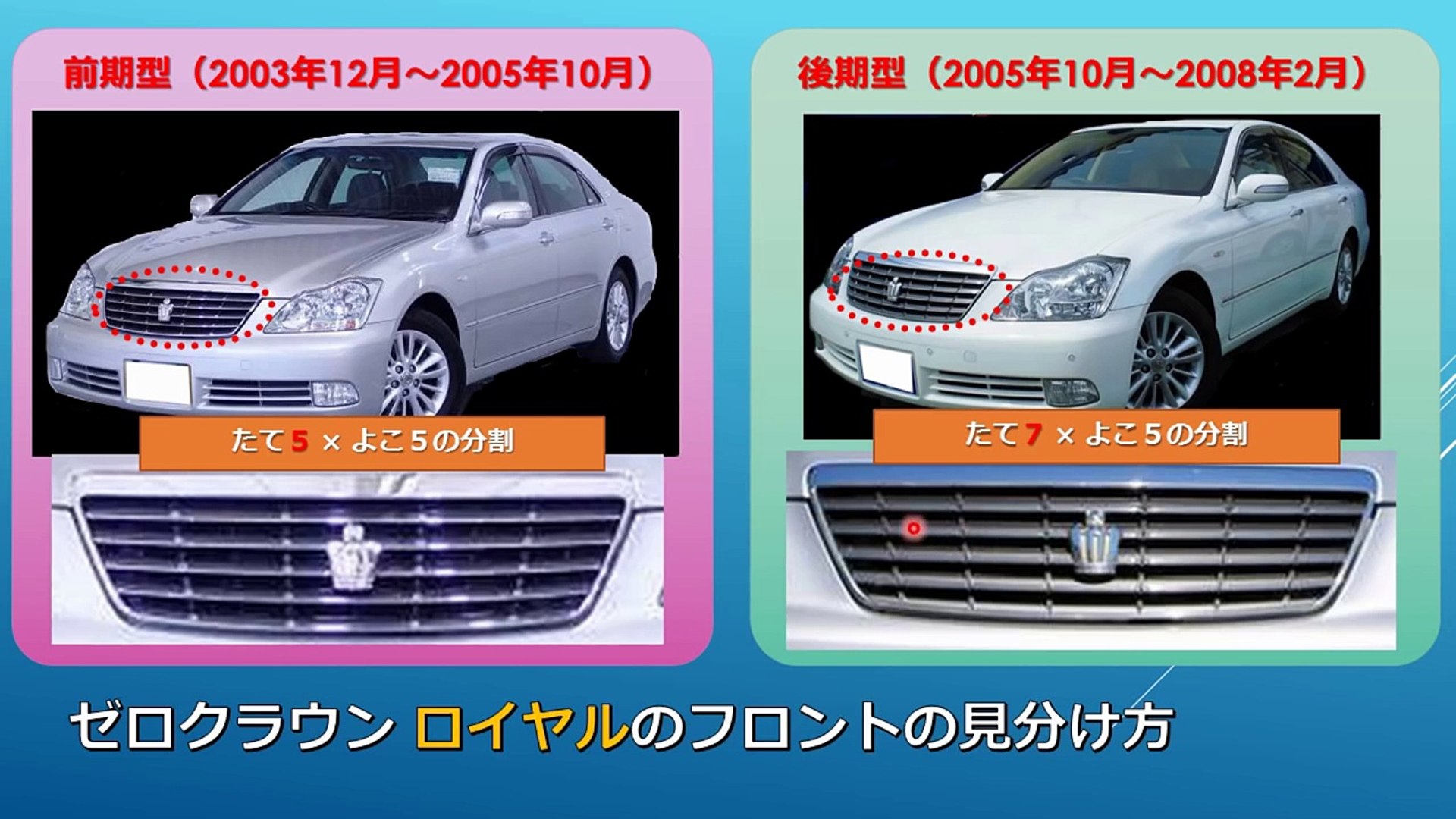 ゼロクラウンには前期 後期がある ゼロクラウンは 前期と後期に分かれています 前期 2003年12月 2005年10月 後期 2005年10月 2008年2月 それぞれ前期 後期を部分的に比較してみましょう フロントグリル. ゼロクラウンもかなり安くなりました 購入を検討されている方も多いと思います 今回はゼロクラウンの 前期 後期 ロイヤル アスリート.