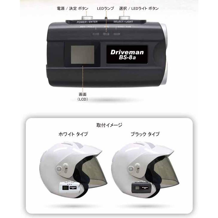 バイク用ヘルメット装着型ドライブレコーダー Driveman Bs 8a 黒 今ならウインドジャマープレゼント Bs 8a Bアサヒリサーチ